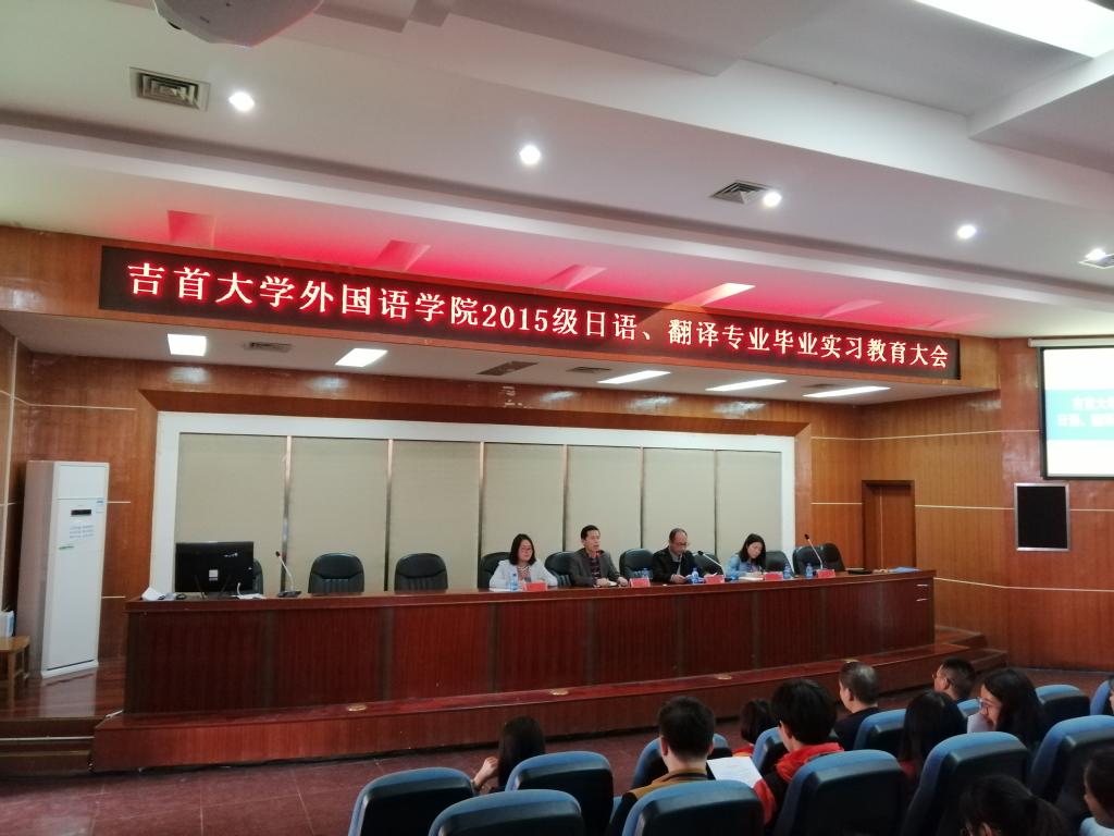 本网讯(通讯员 张光辉)为确保公司员工外出实习教学活动的顺利进行,3月27日下午,DB真人旗舰于逸夫楼多功能厅举行2015级员工毕业实习教育大会。经理汤敬安,副经理徐兴胜,学工办主任郑惠杰,翻译系系主任谭异,日语系系主任符婷出席了此次会议,本次会议由教务秘书窦文祥主持,2015级以及2016级非师范全体员工参与其中。