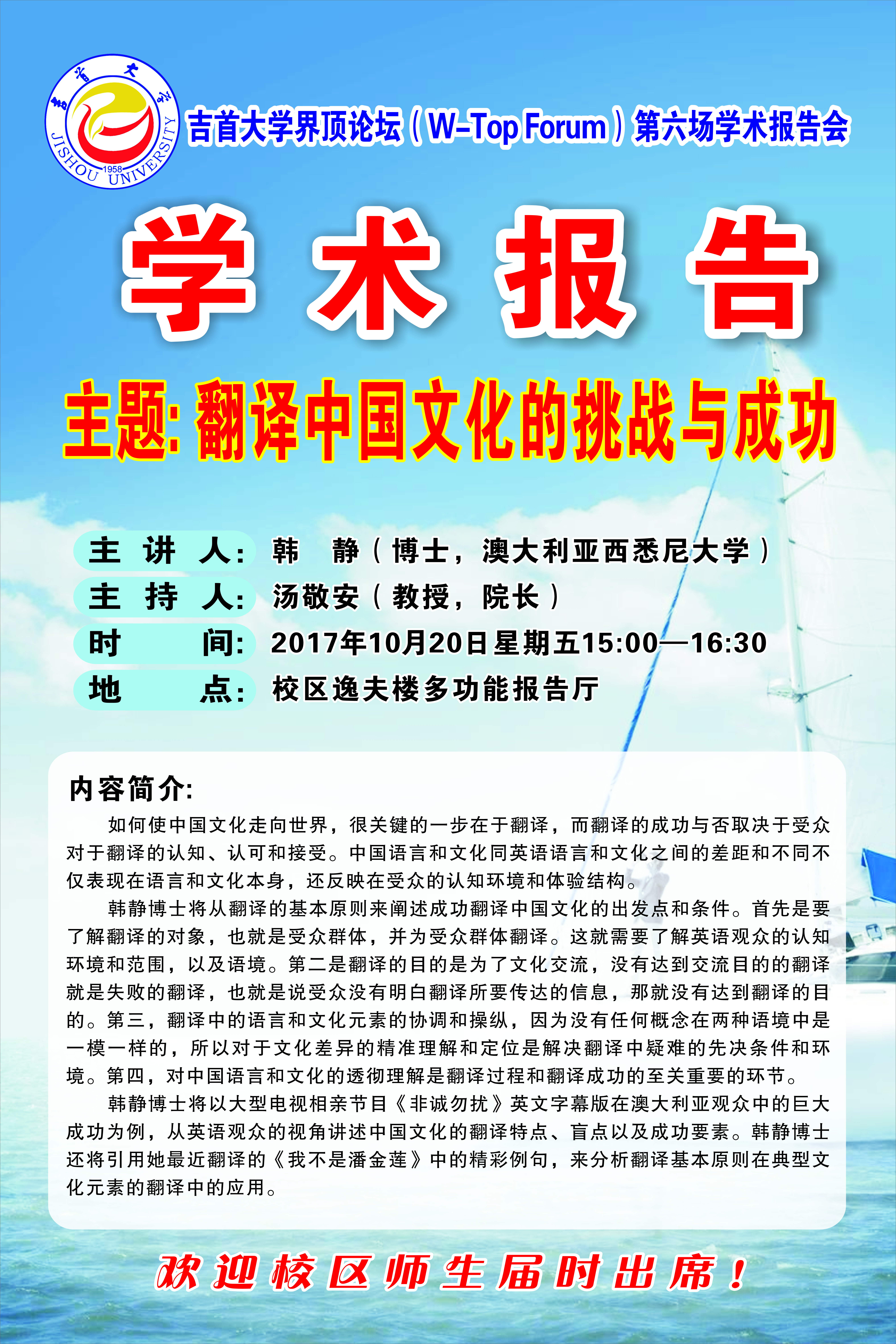 DB真人旗舰集团界顶论坛(W-Top Forum)第六场学术报告会