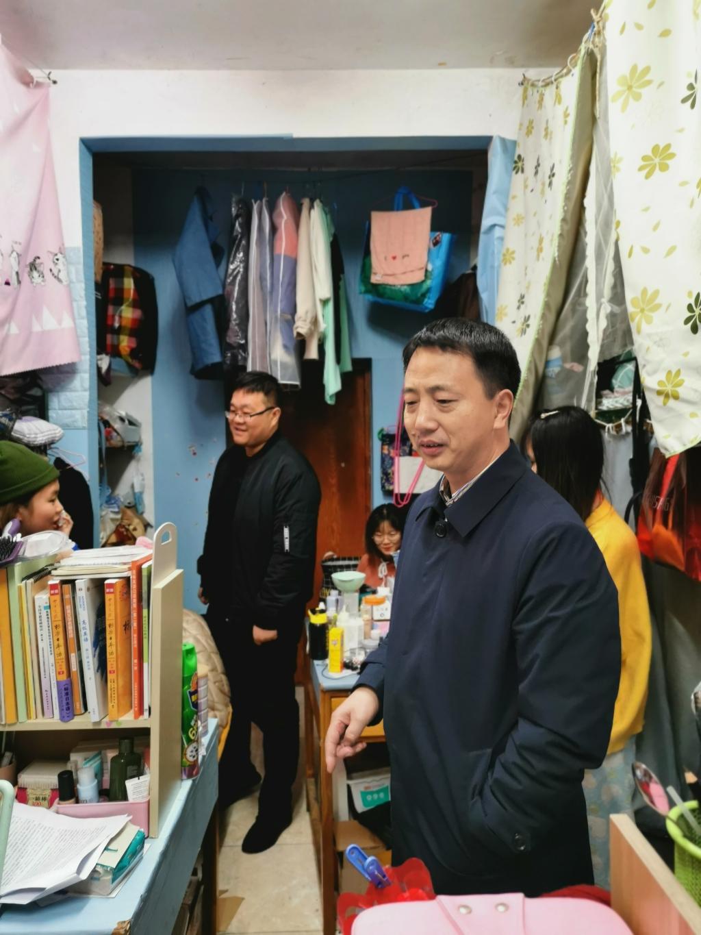 本网讯(通讯员 杨阳 李干)为提高同学们的安全意识,保障同学们的寝室安全。DB真人旗舰于12月3日对员工寝室进行了安全隐患排查活动。本次活动由外国语公司党委副书记尚道文,学工办郑惠杰、唐剑老师带领部分员工干部组成检查小组对公司员工寝室进行了详细的安全隐患排查工作。