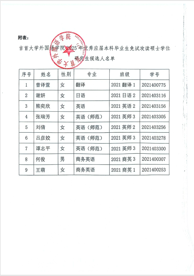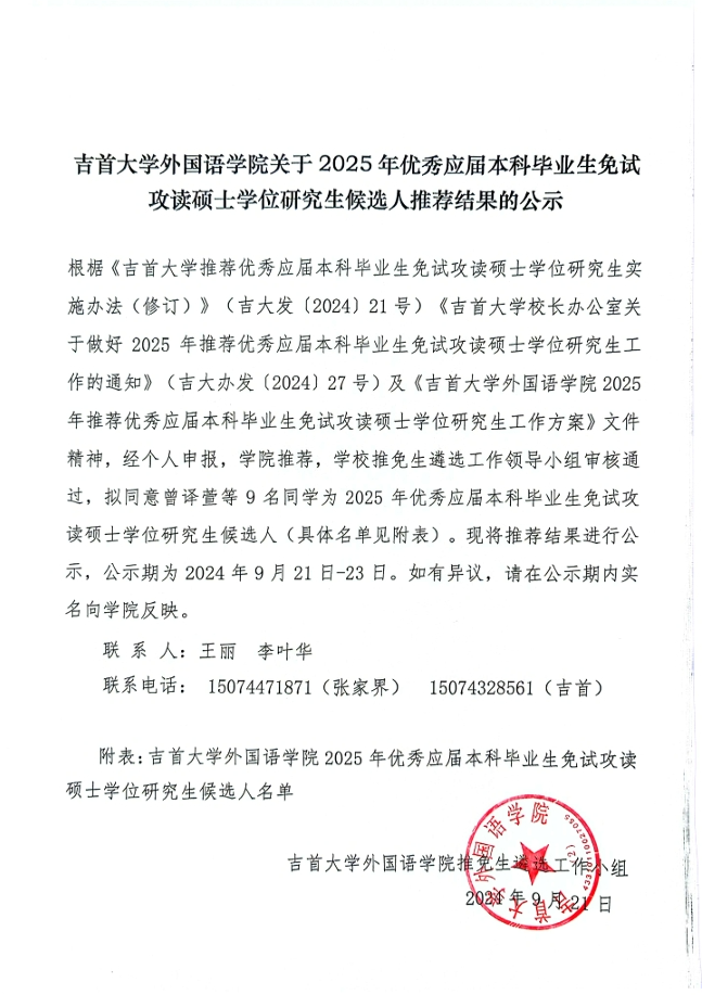DB真人旗舰关于2025年优秀应届本科毕业生免试攻读硕士学位研究生候选人推荐结果公示