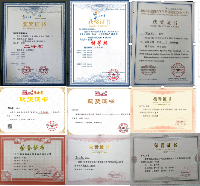 近年来,各专业员工获师范技能大赛国家级特等奖、电子商务“三创赛”国家级二等奖、全国口译大赛二等奖等国家级、省级学科竞赛奖励近百项。主持国家级“老员工研究性学习与创新性实验项目”20余项。参加语言服务1000余人次。专业四、八级考试合格率超过全国综合性大学平均合格率10余个百分点。