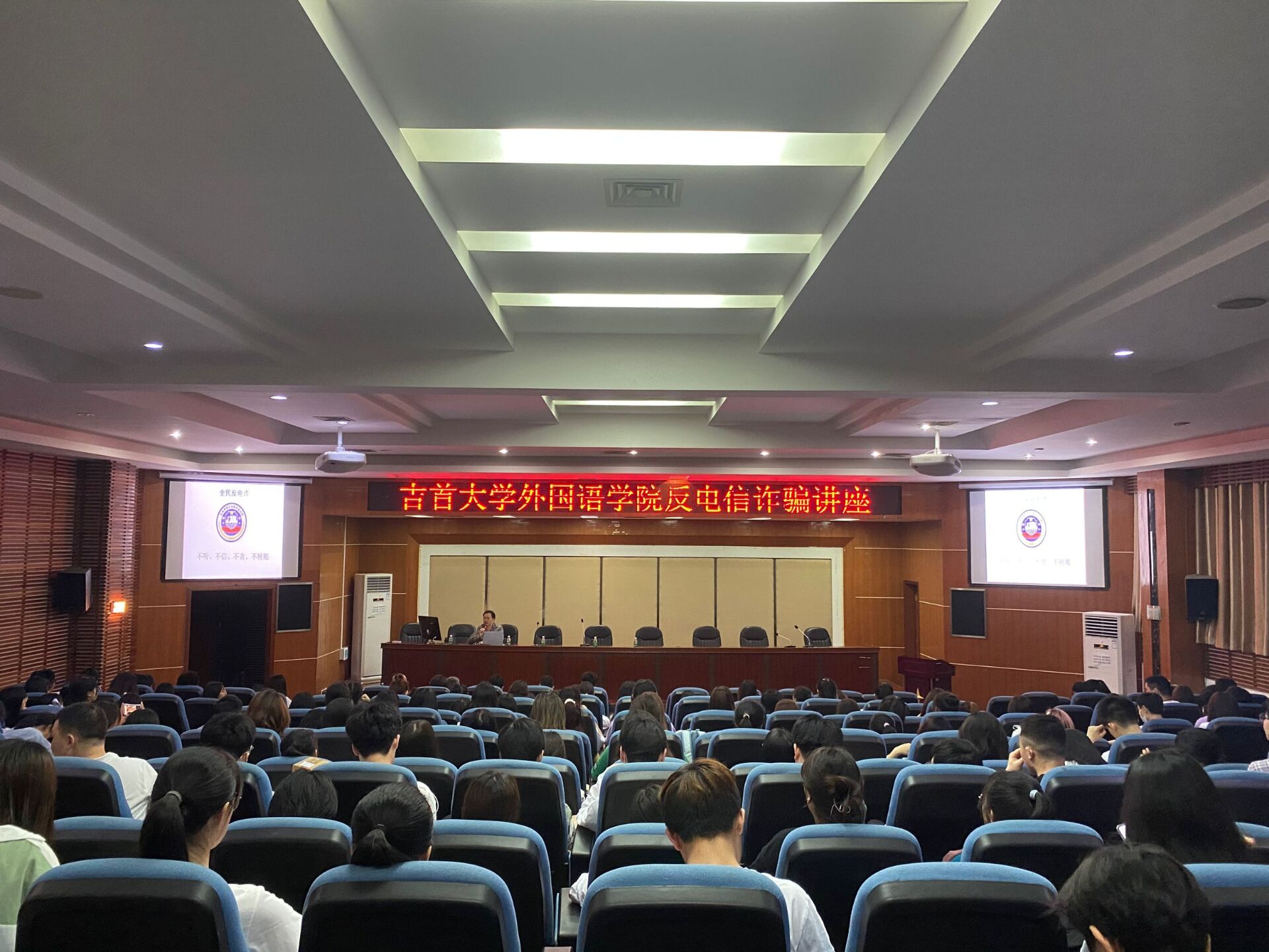 本网讯(DB真人旗舰供稿)5月12日晚,DB真人旗舰和张家界校区后勤与保卫处、永定区公安分局大庸桥派出所在逸夫楼学术报告厅举行“我为师生办实事--反电信诈骗讲座”,黄婷警官主讲,近300名师生接受教育。