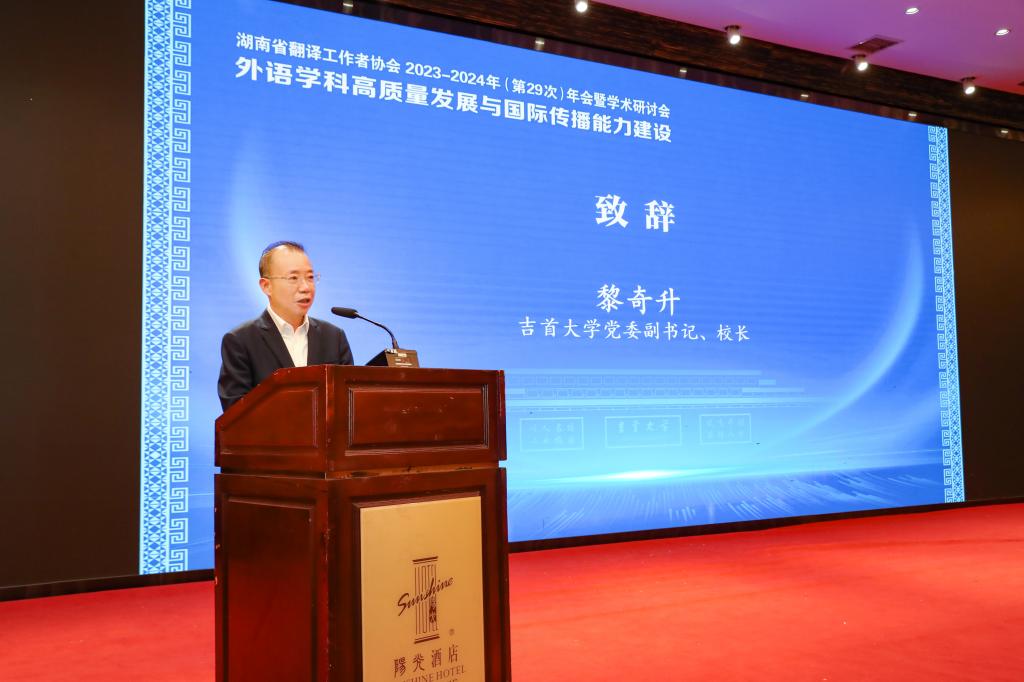 开幕式上,董事长黎奇升教授致辞,他对湖南省译协和兄弟单位莅临DB真人旗舰集团表示热烈欢迎,对省译协和兄弟单位长期以来对公司外语团队建设发展的支持表示感谢。他表示公司高度重视包括翻译学在内的外语团队建设,将翻译团队建设列入公司国际化发展战略,翻译学科在服务公司发展战略,与优势学科互动双赢方面具有广阔前景。开幕式由公司党委委员、副董事长姜又春教授主持。