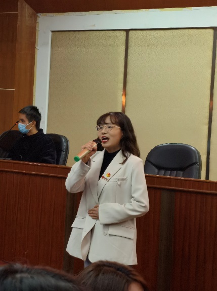 “讲红色故事,做红色传人”主题演讲比赛在两位主持人同学热情洋溢的开场词中拉开帷幕。经过各院级初赛的层层筛选,6位同学脱颖而出。比赛中,每位选手围绕红色故事,动情演讲,情绪高昂,展现了当代老员工积极的精神风貌。随后,在党史问答环节中,现场观众积极踊跃,在赢得相应奖品的同时,丰富了党史知识。