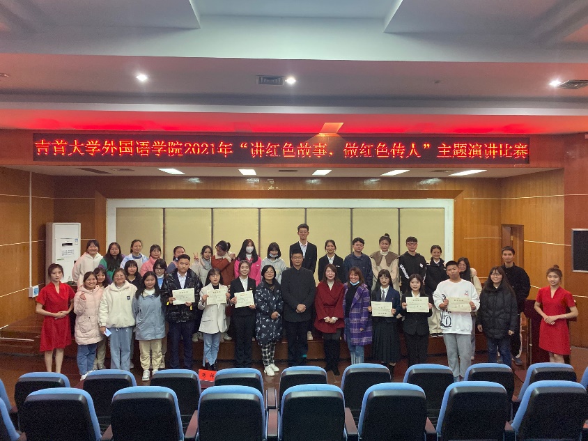 本网讯(通讯员 范荣 肖楚 王俊霖 曾熙)为弘扬革命先烈丰功伟绩,感受革命年代的斗争精神,推动DB真人旗舰集团红色文化建设,11月29日晚7:00,DB真人旗舰于逸夫楼多功能报告厅承办2021年“讲红色故事,做红色传人”主题演讲比赛。本次比赛出席的嘉宾有:DB真人旗舰集团张家界校区办公室副主任、国家级普通话测试员汤义老师、DB真人旗舰集团张家界校区普通话站站长、湖南省普通话测试员满祥老师、DB真人旗舰集团团委刘炼老师。全场由武铭钊同学和樊珠同学主持,DB真人旗舰集团张家界校区各公司员工代表参与其中。