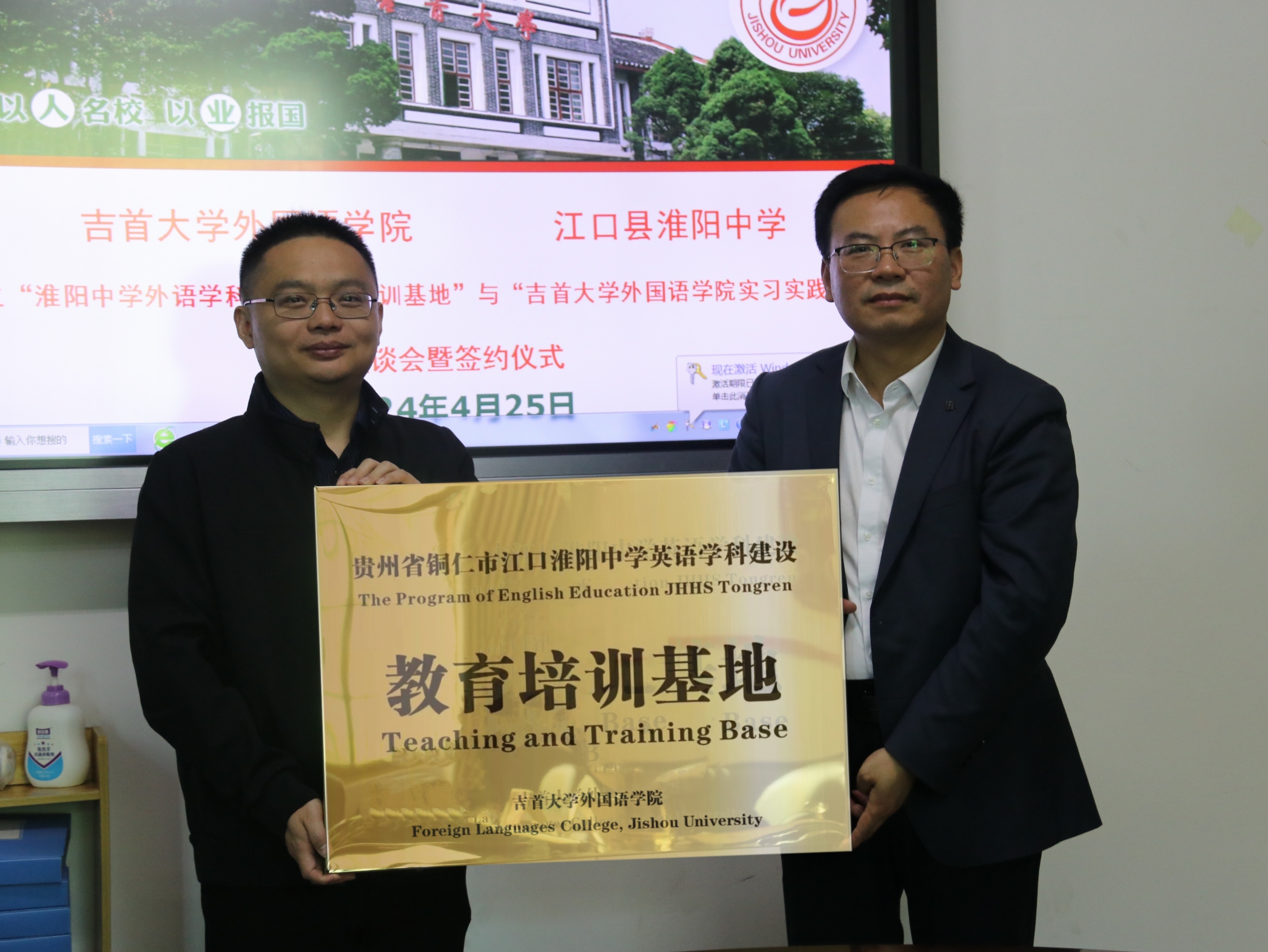 随后,公司与江口淮阳中学正式签署了江口淮阳中学英语团队建设教育培训基地、DB真人旗舰实习实践基地合作协议。