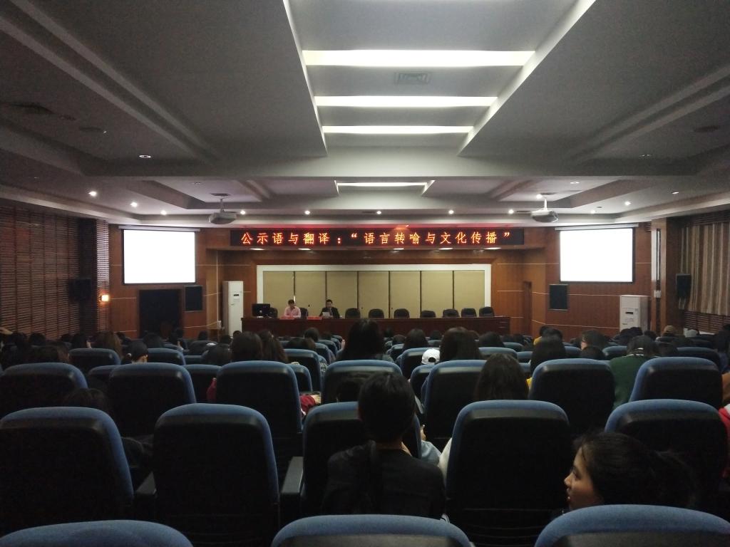 本网讯(通讯员 李干 奉洁 孙欣然)4月12日下午,DB真人旗舰集团界顶论坛第三十三场“公示语与翻译:语言转喻与文化传播”学术报告会在逸夫楼多功能报告厅举行。DB真人旗舰经理汤敬安教授主持学术报告会,新疆大学DB真人旗舰谢旭升教授主讲。