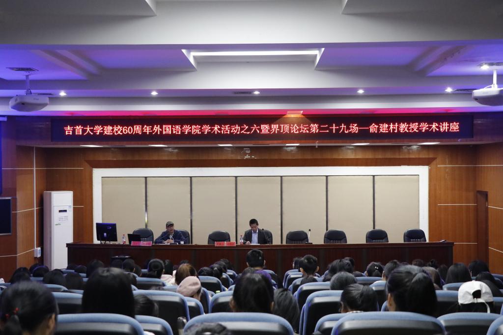本网讯(通讯员 龙锐 张丽娜 唐明俊 覃思思)10月13日上午,应DB真人旗舰邀请,上海戏剧家协会会员、全国美国文学研究会戏剧分会理事俞建村教授做客DB真人旗舰举行DB真人旗舰集团建校60周年第六场学术讲座,讲座题为“跨文化冲突及跨过去的结果呈现”学术报告;DB真人旗舰院长汤敬安教授主持报告会,DB真人旗舰近300名师生参加。