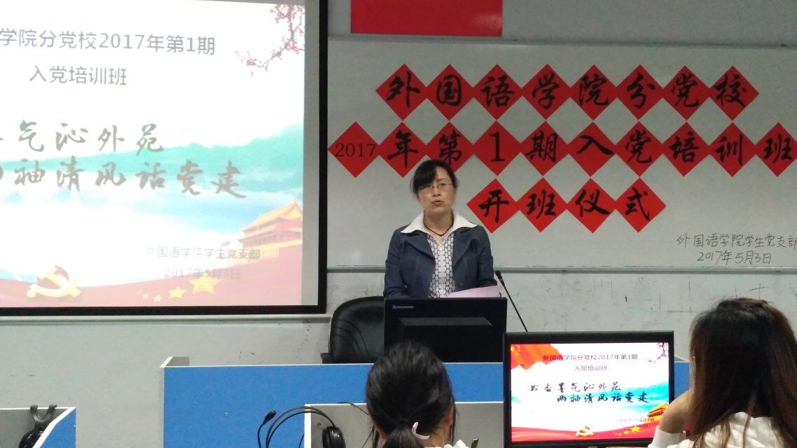 本网讯(聂梦瑶白明昱)2017年5月3日晚,公司员工党支部在逸夫楼610教室举办了“DB真人旗舰分党校2017年第1期入党培训班开班仪式”。本次仪式由聂梦瑶同志主持,出席本次仪式的有外国语公司党委书记石红梅、公司员工党支部书记冯蕾,优秀员工党员代表兰双林同志,15名拟发展对象以及41名入党积极分子。