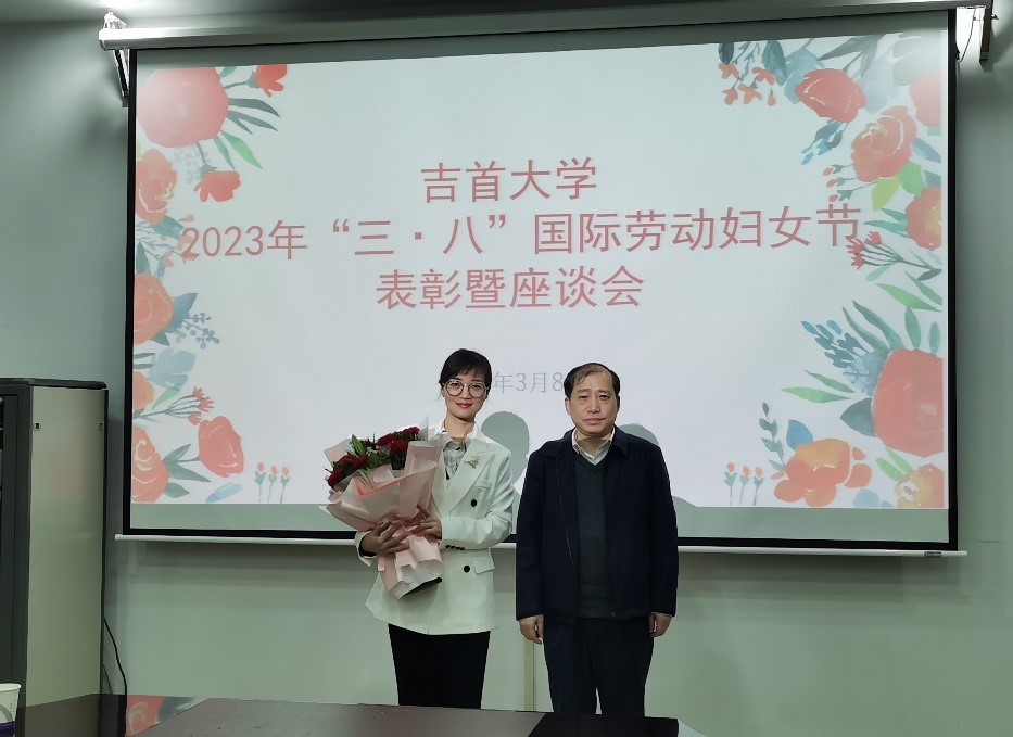 本网讯(DB真人旗舰办公室)3月8日上午,公司在吉首砂子坳校区凤凰楼二会议室召开2023年“三八”国际劳动妇女节表彰暨座谈会,公司教师湖南省教育系统“芙蓉百岗明星”获得者郭建飞作为代表发言,公司党委书记廖志坤为其颁奖。