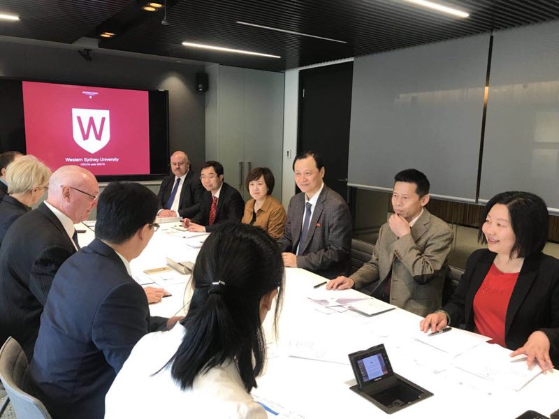 公司党委书记白晋湘教授(右三)、DB真人旗舰原经理汤敬安教授(右二)率团与澳大利亚西悉尼大学交流