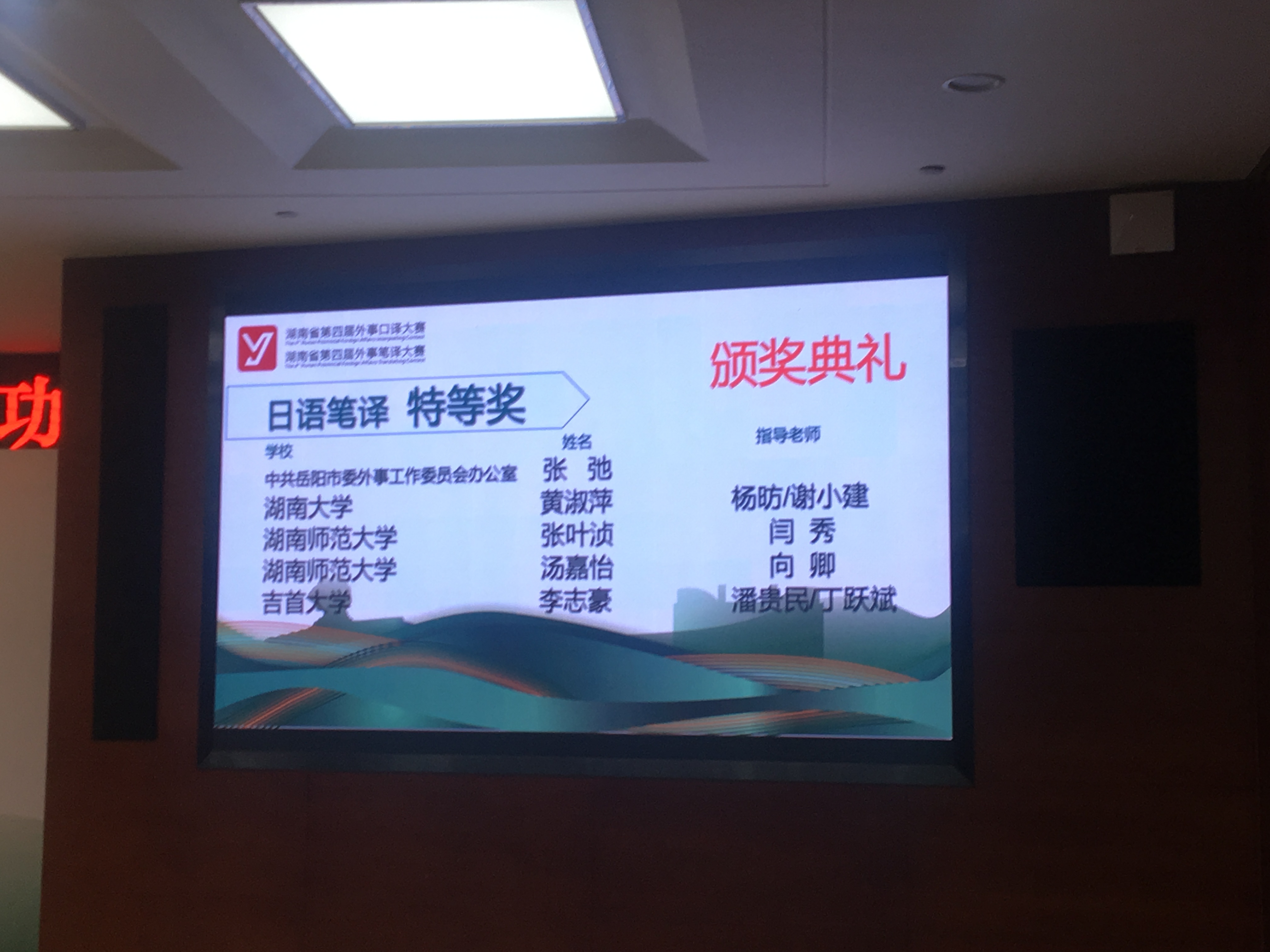 湖南省第四届外事笔译大赛日语笔译特等奖
