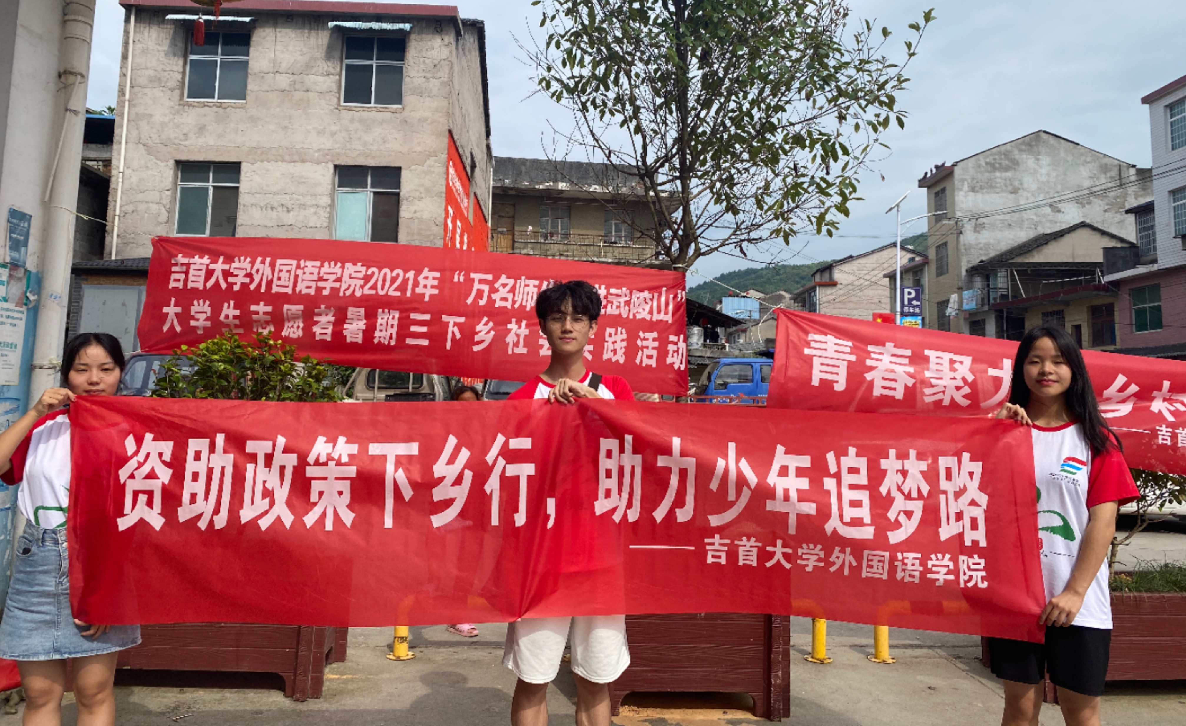 本网讯 (肖 楚) 近日,DB真人旗舰大学暑期三下乡团队在张家界市永定区三家馆乡开展了“国家资助政策下乡行”活动。团队主要采用问卷调查、走访交流、派发资助政策宣传材料和摆摊设点、开宣讲会的形式展开调研。