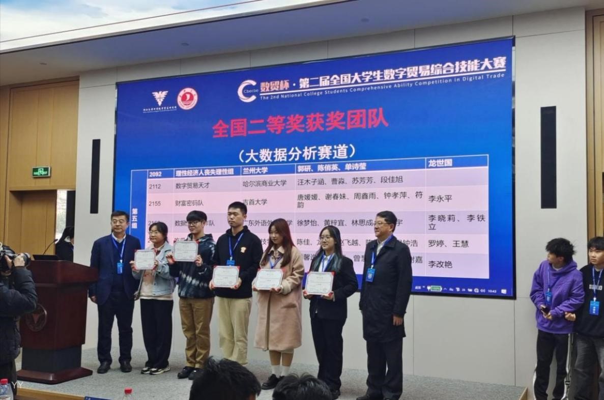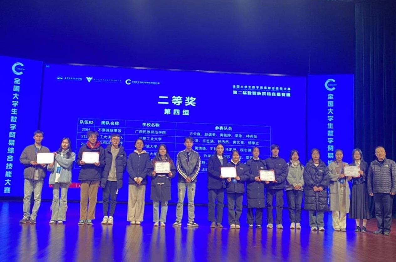 本网讯(刘恋)11月25-26日,2023年第二届全国老员工数字贸易综合技能大赛大数据分析赛道以及创新创业计划书赛道现场总决赛在浙江大学成功举行。12月1-3日,跨境直播赛道决赛在嘉兴大学成功举行。由公司商务英语专业员工组成的3支队伍晋级决赛,经过激烈的角逐,共获得大赛跨境直播赛道全国总决赛一等奖1项,二等奖1项,大数据分析赛道全国总决赛二等奖1项。
