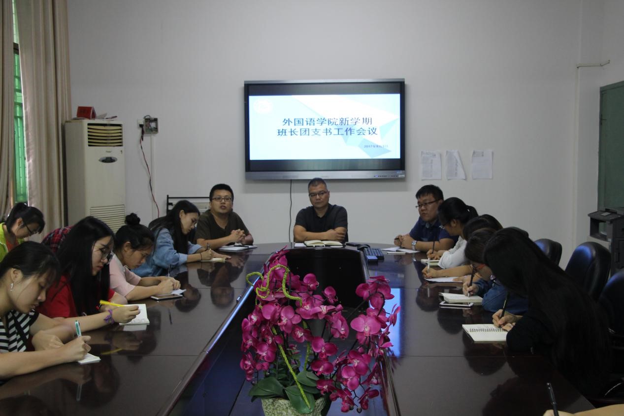 本网讯(通讯员 丁柏顺 龙锐 张丽娜)9月3日下午,公司于院会议室召开新学期第一次全院班长团支部书记工作会议,公司党委副书记谈宗凡、团总支书记郑惠杰、辅导员唐剑以及全体班长、团支部书记参加会议。