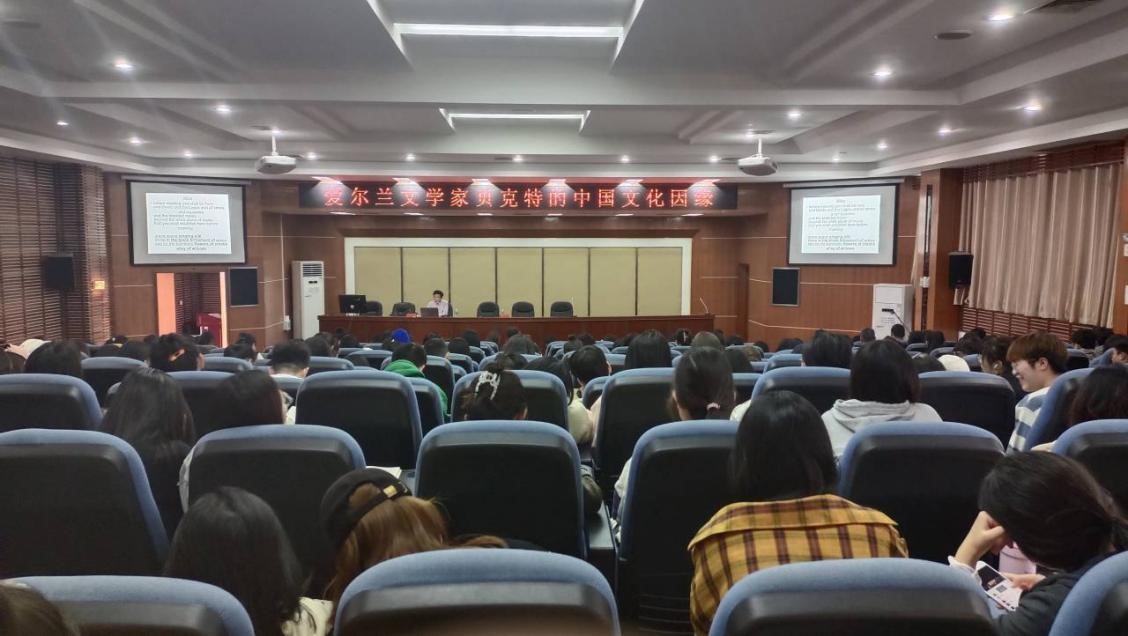 张和龙教授从《贝克特全集》谈起,梳理其作品中的中国文化元素,评析贝克特对中国文化的借鉴与吸收,讨论贝克特式“拿来主义”的几个特点。张和龙教授还讨论了贝克特在中国的译介与研究,认为贝克特接受中国文化的影响,其作品也对中国文学、文化产生了重要影响,说明中外文化交流是一个双向或多向的互鉴与交融的过程。在交流互动环节中,同学们就此次讲座和学习过程中所遇到的问题积极请教,张和龙教授耐心解答并给出建议。现场气氛活跃,学术氛围浓厚。