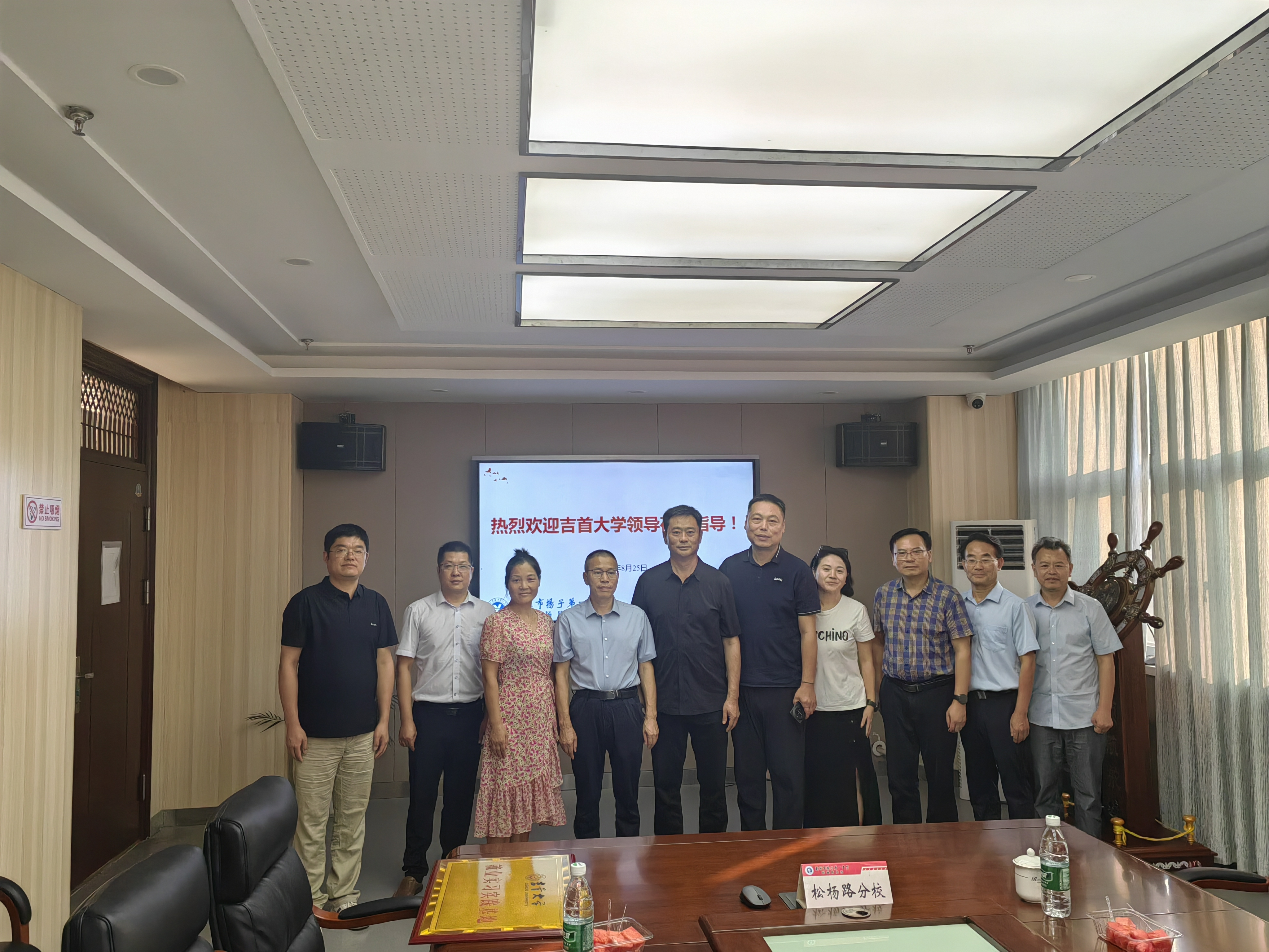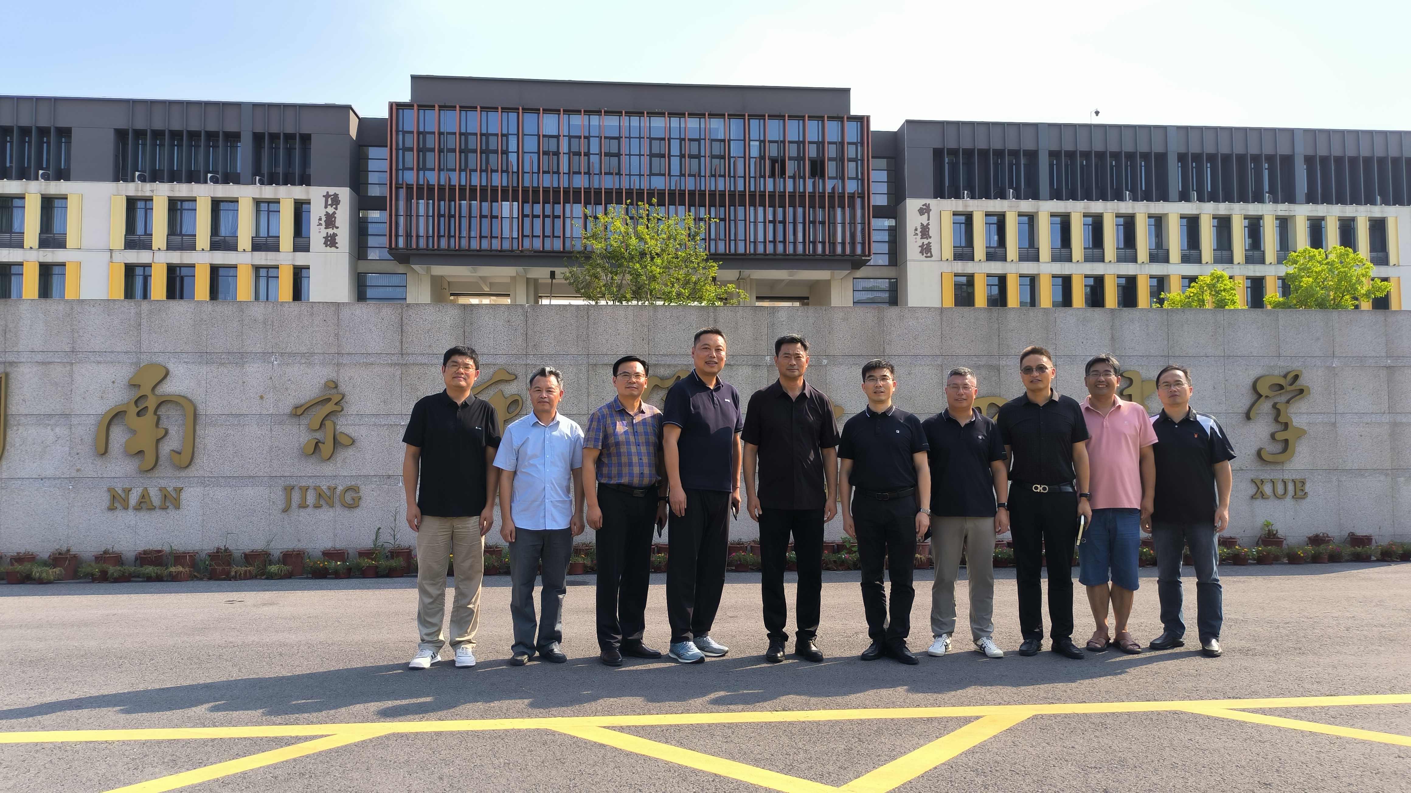 图为王绯一行在南京扬子一中松杨路分校与南京部分员工合影