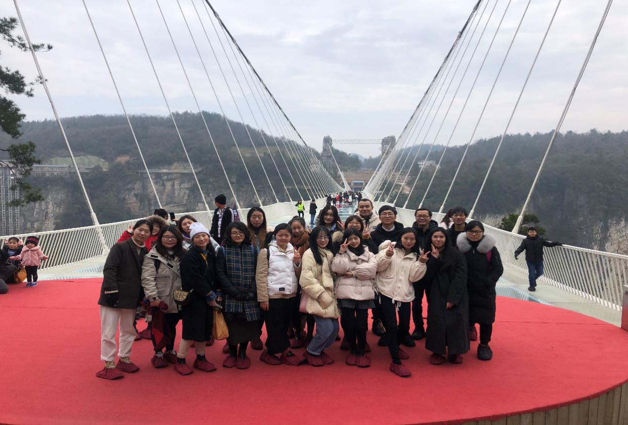 图为参赛研究生在玻璃桥处合影